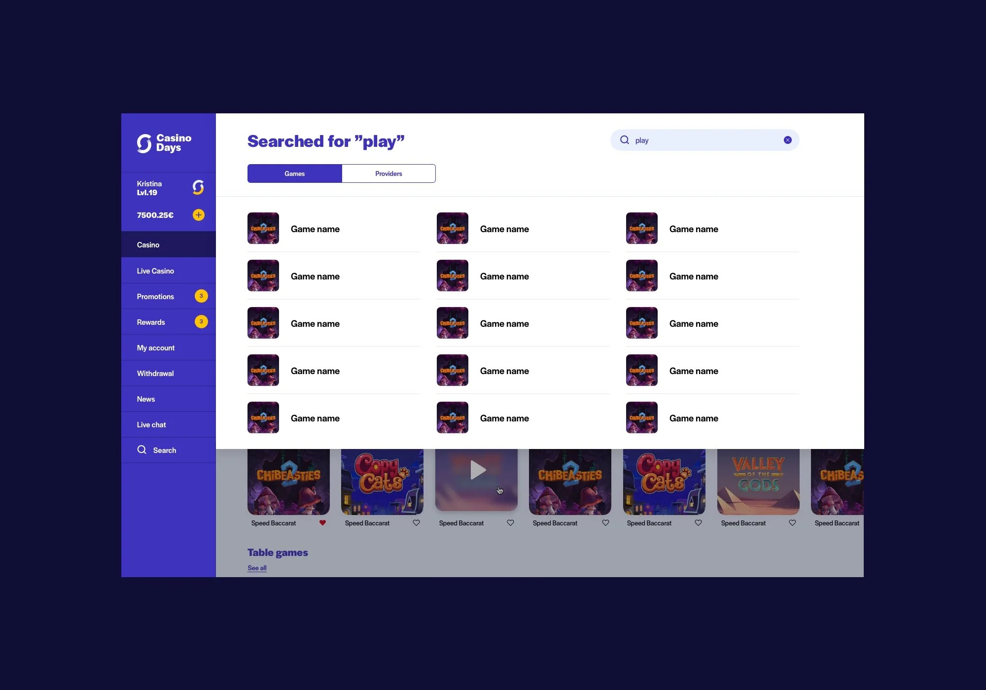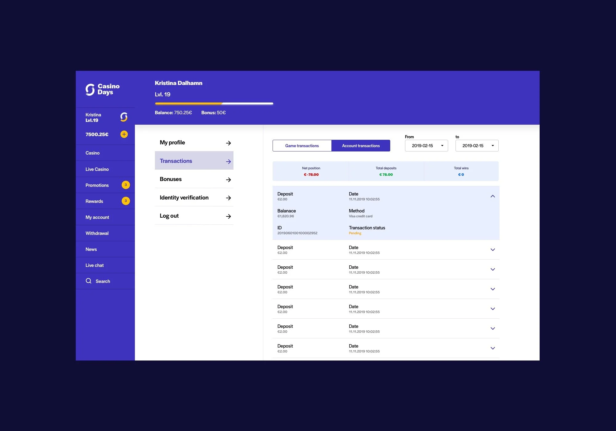 Casino days is an online casino that needed a full redesign of their desktop and mobile version of the casino. They already had wireframes and functions. Thomas created the UI design and made a modular design so that the client could reuse and create new solutions for their members.