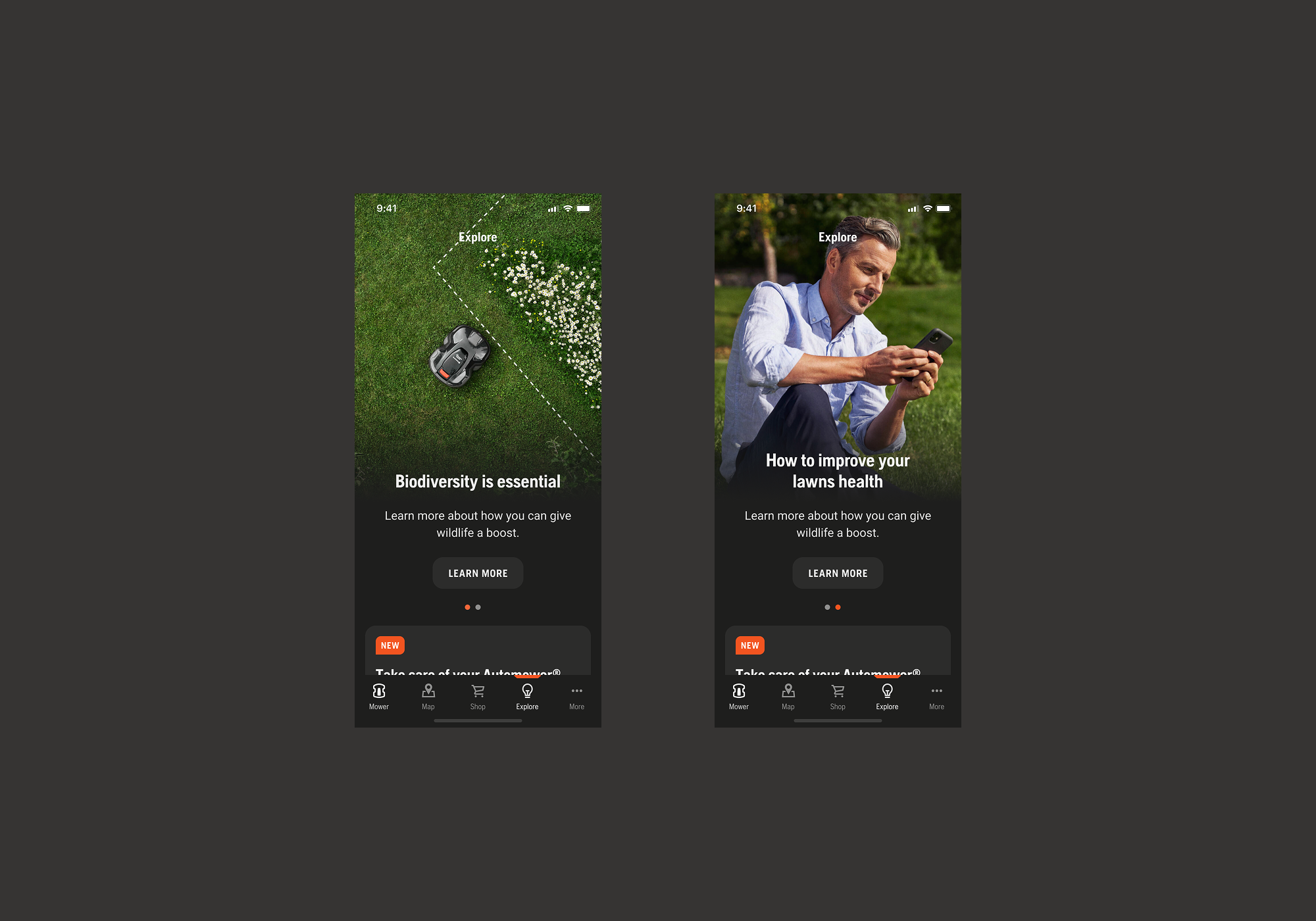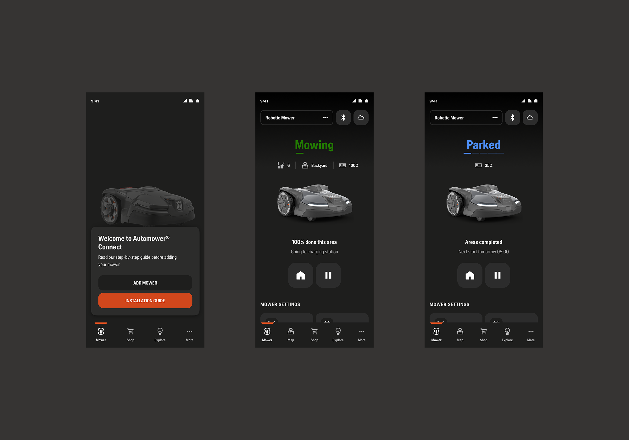 During my time at Husqvarna, I worked as a designer on the company’s app for robotic lawnmowers. My primary focus was to modernize the app’s interface through a comprehensive redesign while ensuring that new features were integrated in an intuitive and user-friendly way.